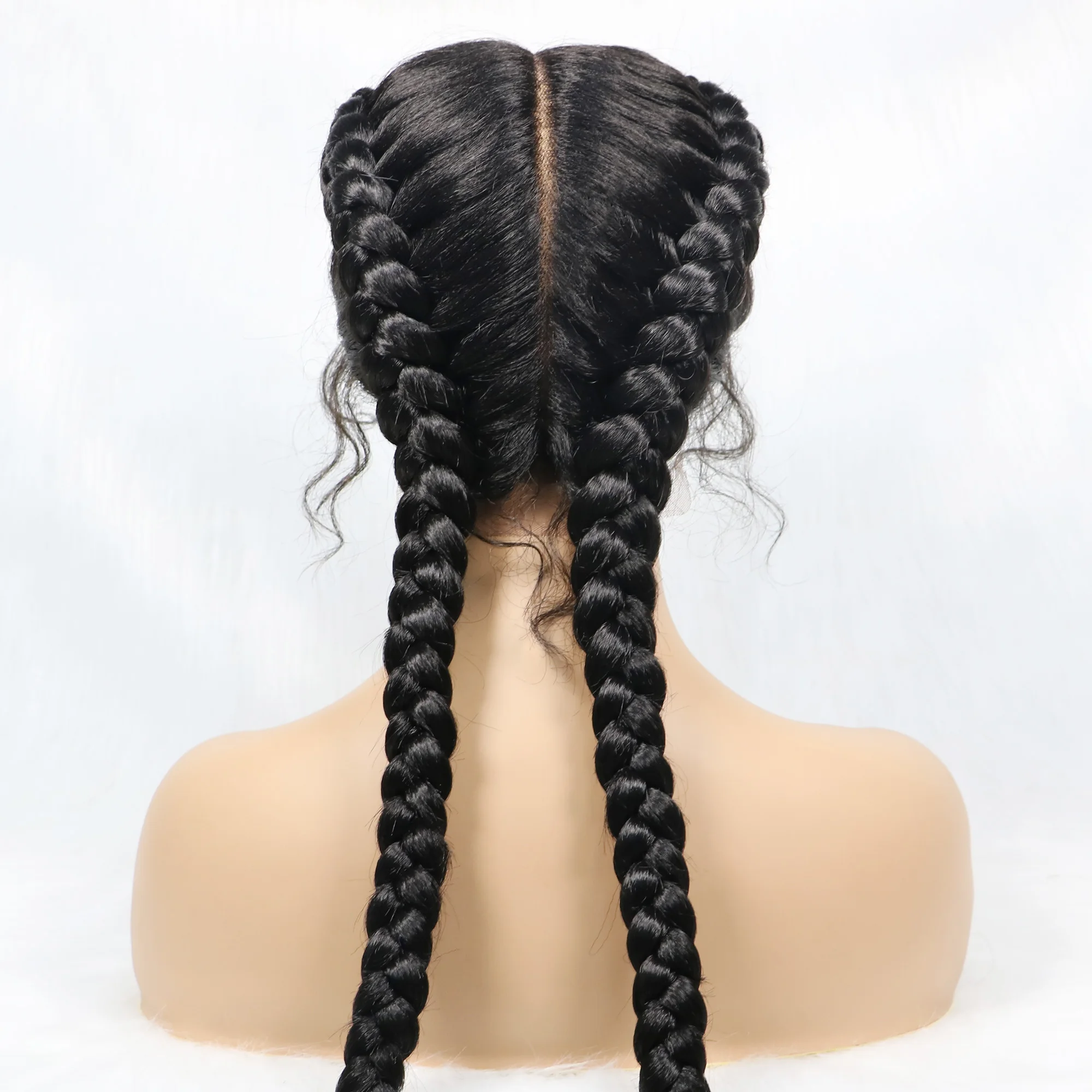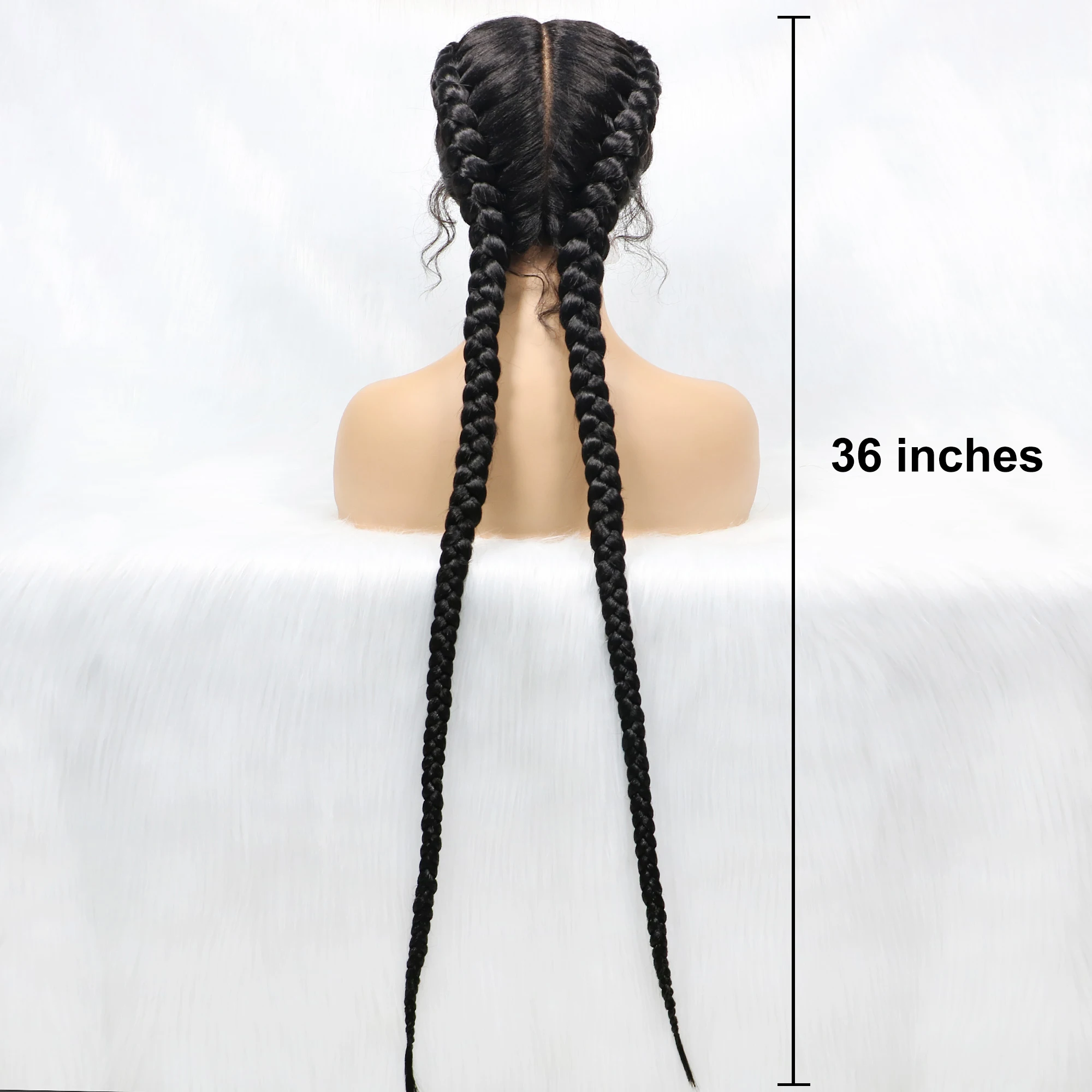 36 Inches Long Lace Front Synthetic Braided Wigs Lace Front Dutch Twins Braids Wig With Baby Hair