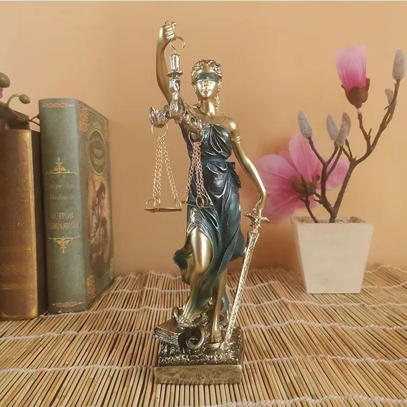 European Antique Bronze Greek Justice Goddess Statue Fair Angels Resin Sculpture Ornaments Desktop Home Decoration Gift