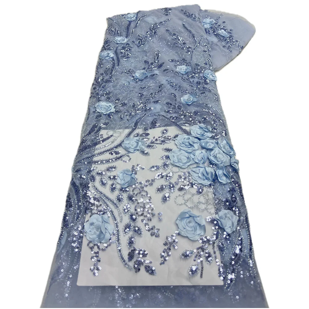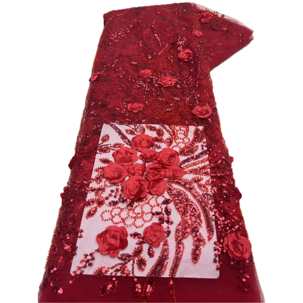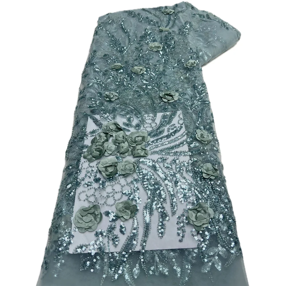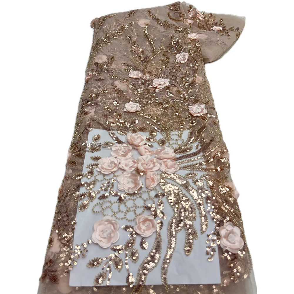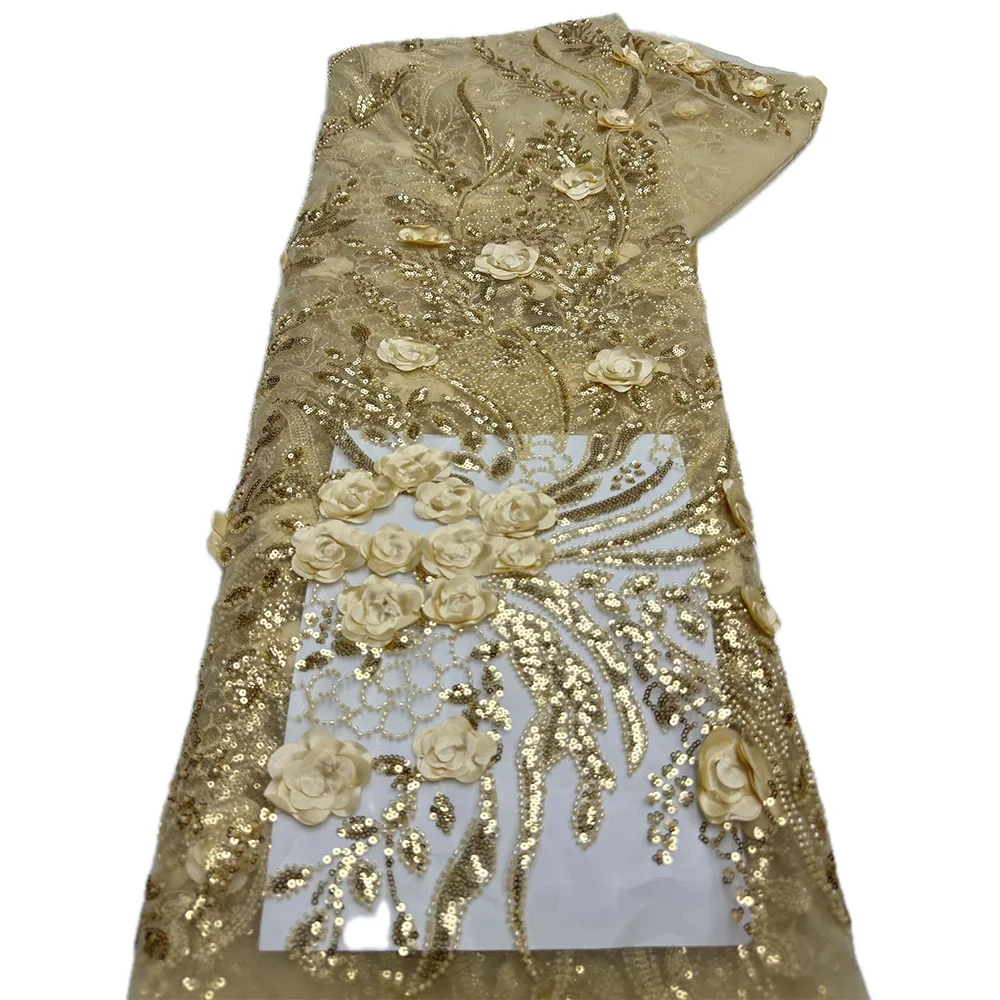 Gold Embroidery African Handmade Beaded Lace Fabric 2025