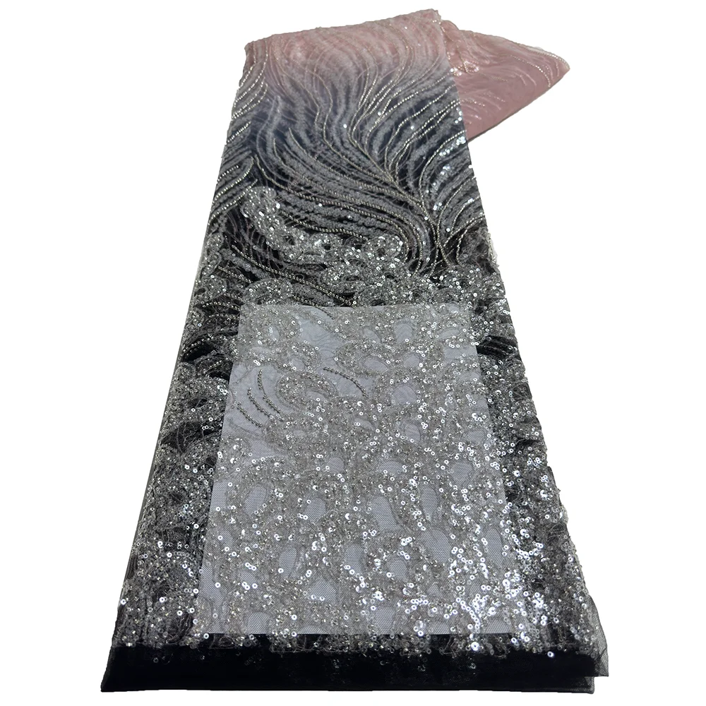 High Quality African French Beaded Lace Fabric