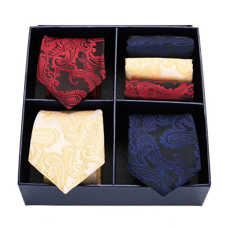 100% quality guarantee! Buy with confidence! Real pictures of the actual goods! Condition: 3 new ties&3 handkerchiefs&1 gift box Brand name: VanGise Material: 100% jacquard woven Silk Size: 145cm in length and 7.5cm in Width Condition: Daylight lamp (Take the material object as) Packing:Packed in a gift box