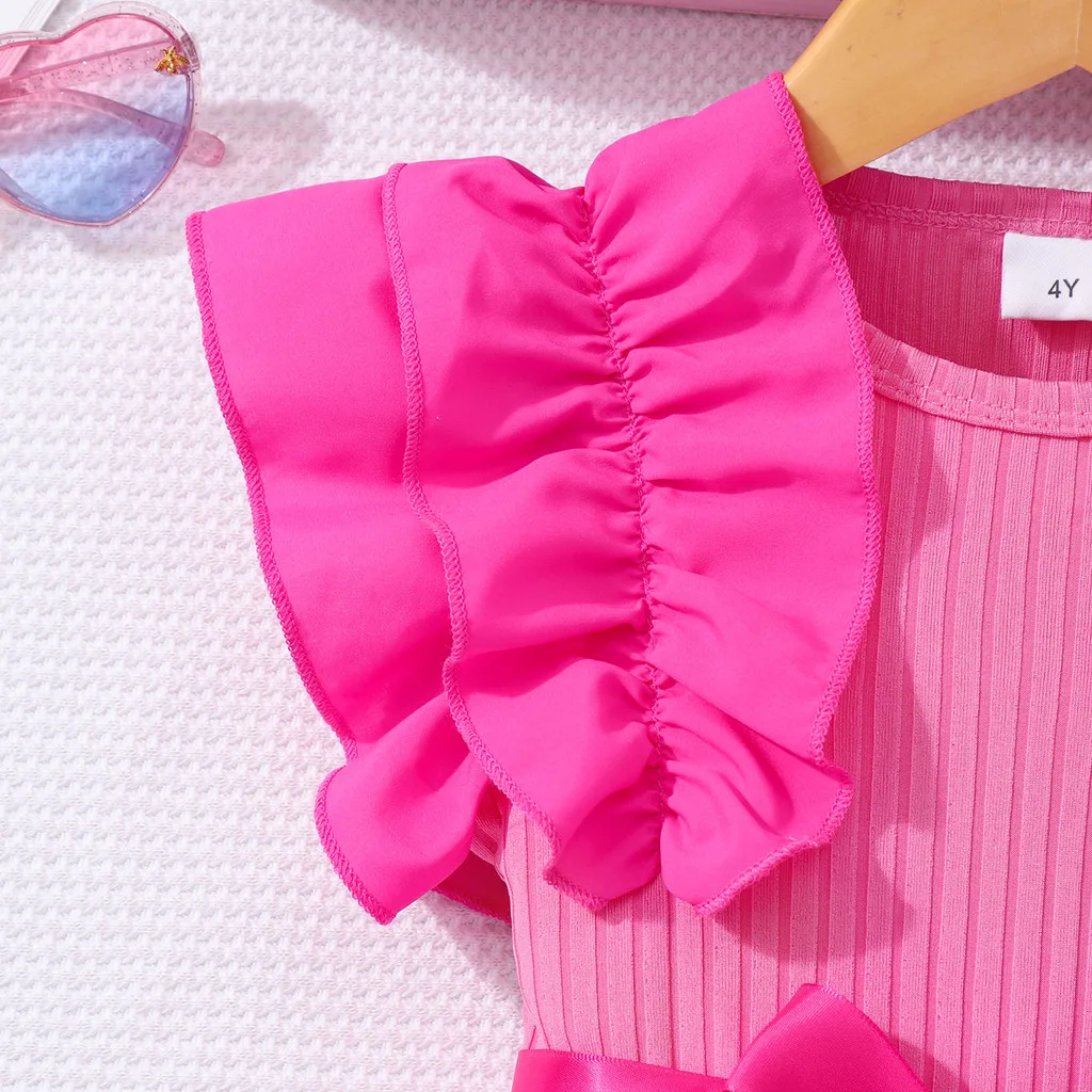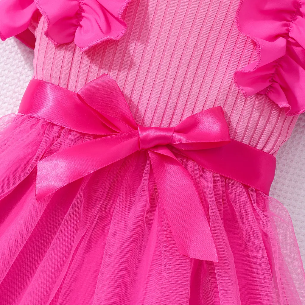 Rose Red Kids Girl Dress Summer Short Sleeve Cute Mesh Teen Dresses Party Children Princess Dress