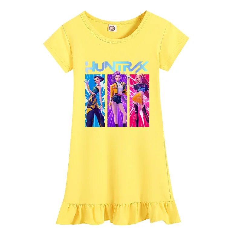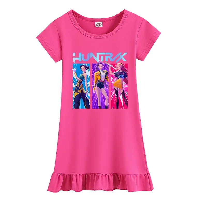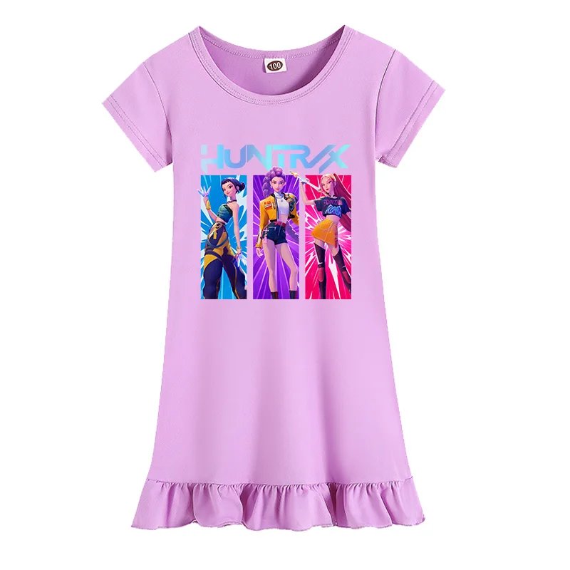 Summer Kpop Demon Hunter Princess Theme Casual Short Sleeve Dress Nightdress Kids Girls Costume Set