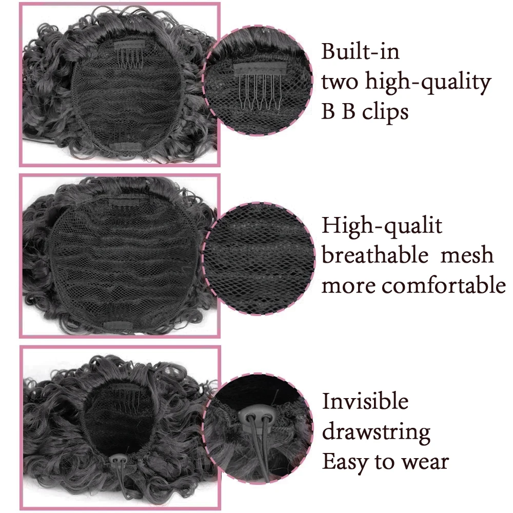 Synthetic Hair Fiber Heat-Resistant Curly Hair With Ponytail Fake Hair Chip-in Hair Extensions Drawstring Elastic Band