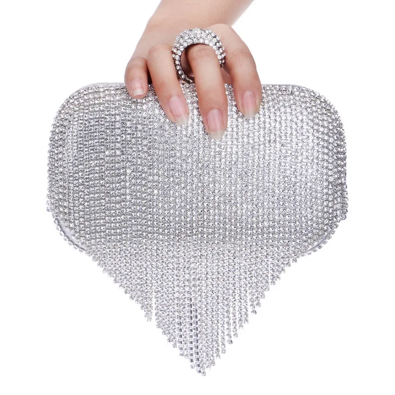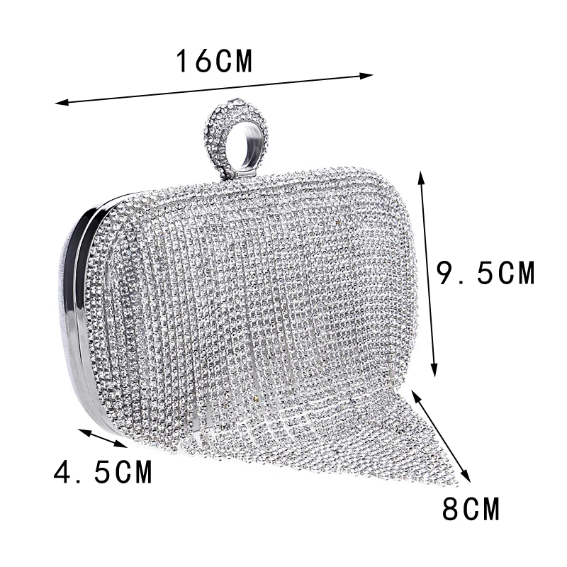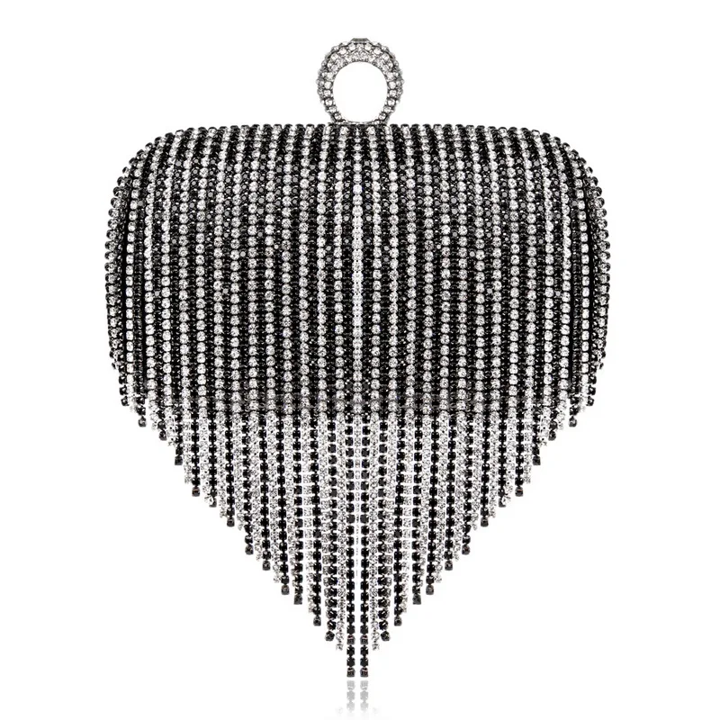 Tassel Diamonds Evening Bags Finger Ring Small Clutch Chain Shoulder One Side Rhinestones Party or Wedding handbags